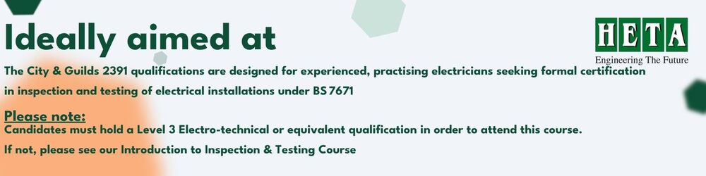Upon successful completion of this course, you will have an advanced understanding of how to safely conduct periodic inspection and testing. To enrol you should be experienced in electrical installations, with previous training and experience of inspection and testing. Within the industry, this is a highly regarded qualification. If you wish to check your suitability for this course please contact sales@heta.co.uk prior to making a booking.